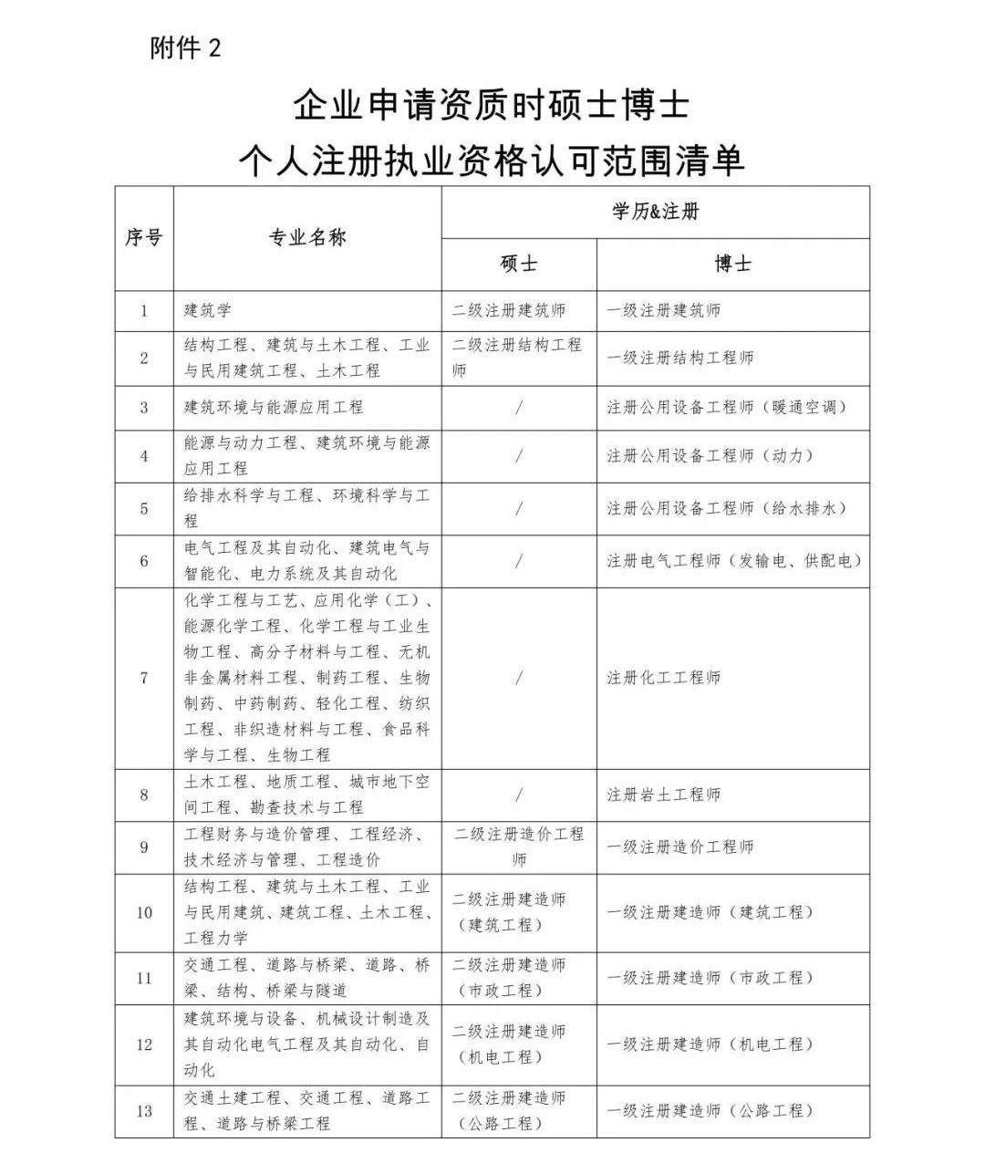 2.?企業(yè)申請(qǐng)資質(zhì)時(shí)碩士博士個(gè)人資格認(rèn)可范圍清單