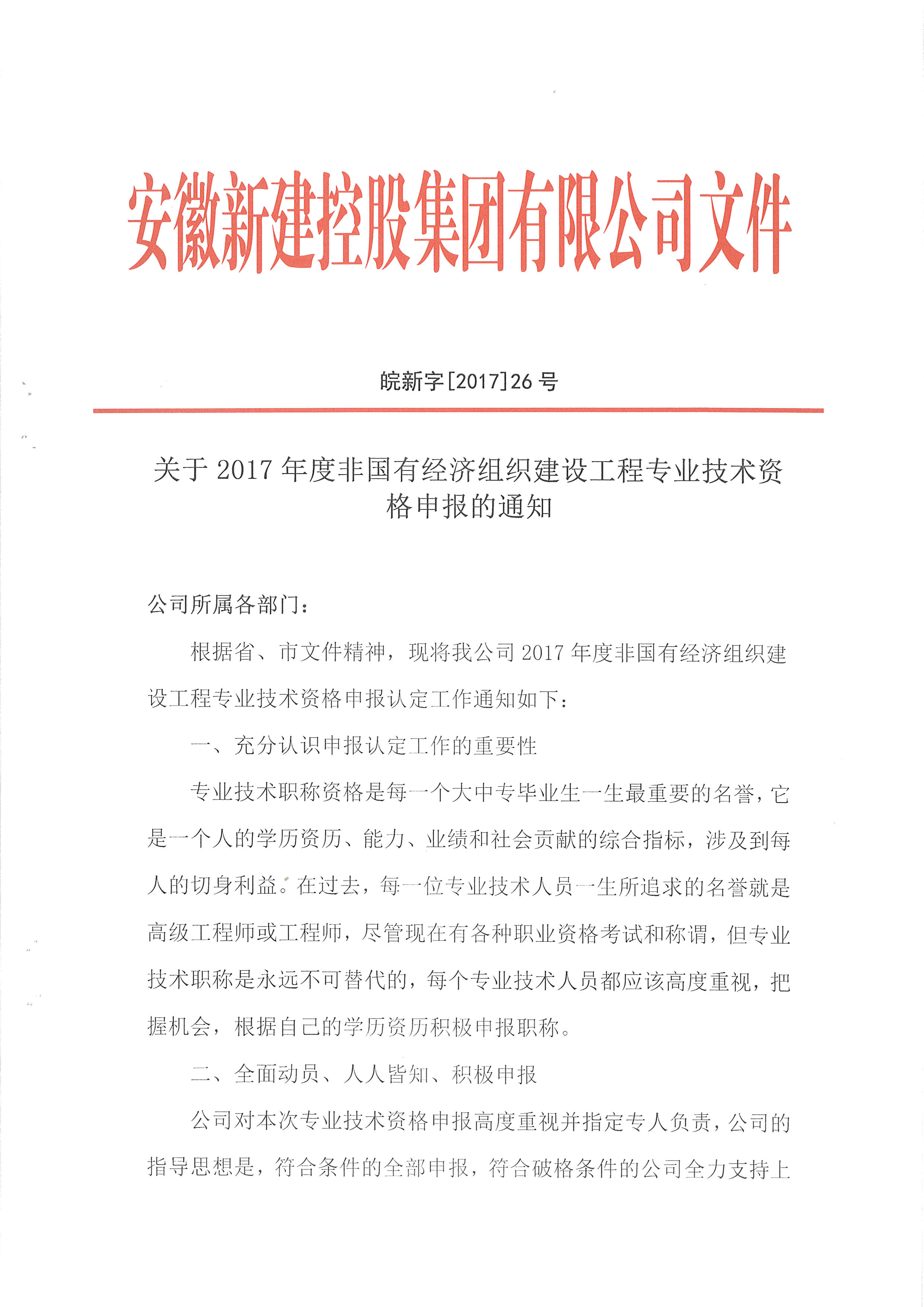 關(guān)于2017年度非國(guó)有經(jīng)濟(jì)組織建設(shè)工程專業(yè)技術(shù)資格申報(bào)的通知