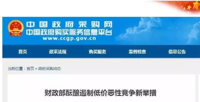 據(jù)悉,財政部近日在答復(fù)全國人大代表建議時提出,將通過繼續(xù)推進政府采購結(jié)果導(dǎo)向,探索建立用戶評價機制,研究修改相關(guān)制度辦法,繼續(xù)加強誠信體系建設(shè)等舉措,著力解決政府采購活動中存在的低價惡性競爭等問題。