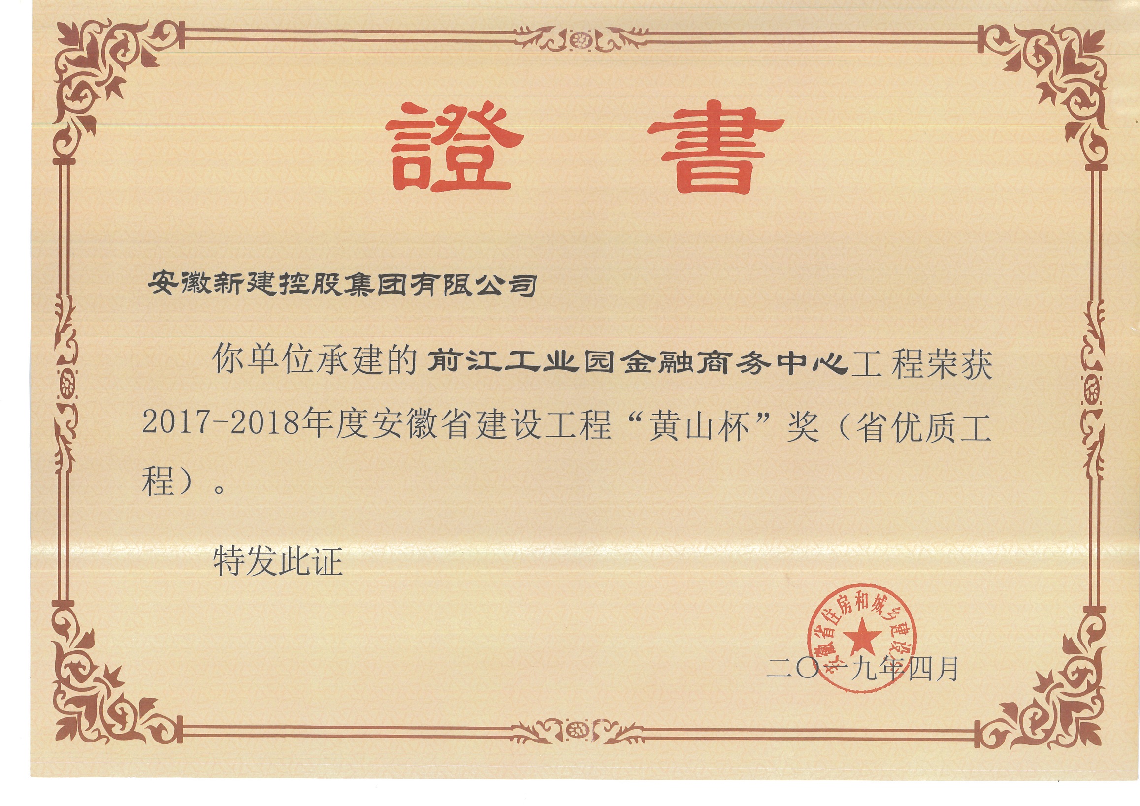 安徽省優(yōu)質(zhì)工程“黃山杯”