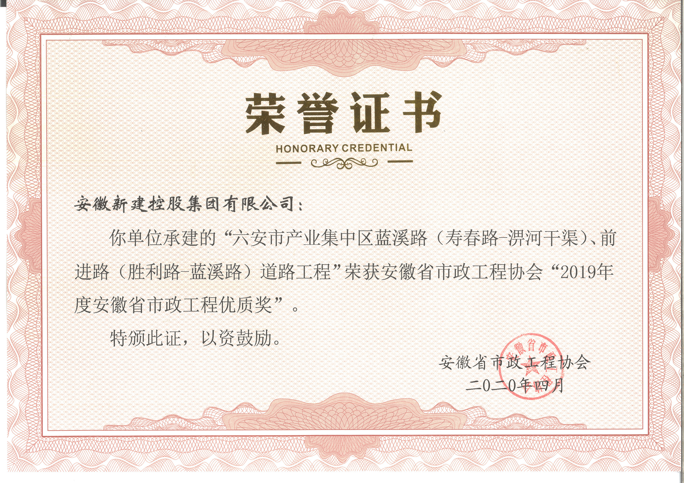 安徽省優(yōu)秀市政施工企業(yè)