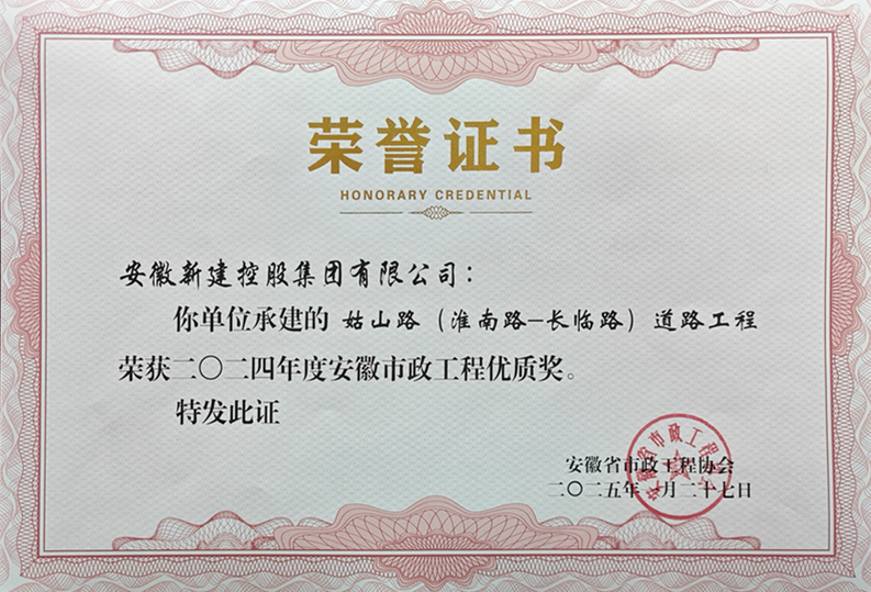 安徽省市政工程優(yōu)質(zhì)獎(jiǎng)