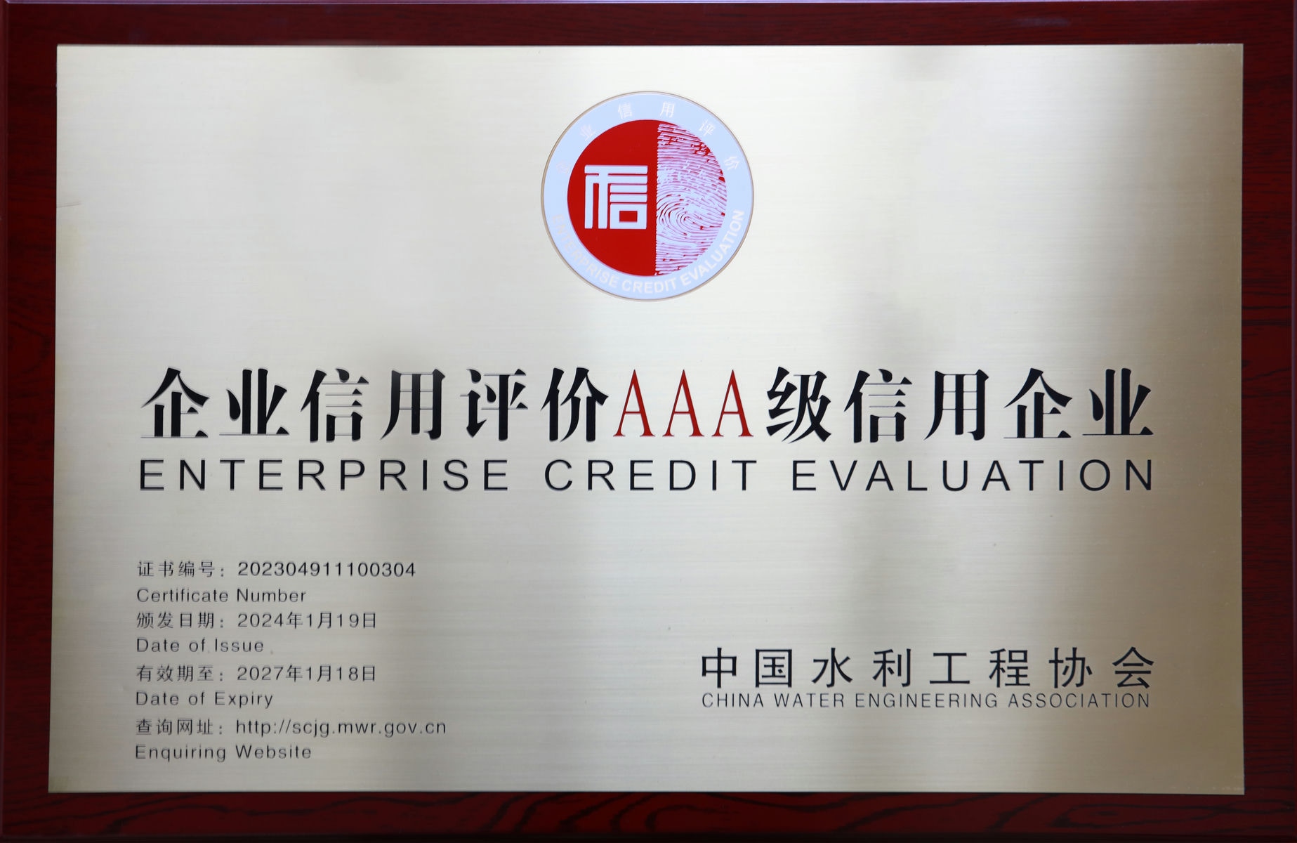 AAA信用等級(jí)證書(shū)