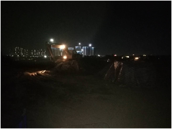 項目部在落實安全度汛措施,配備機械、物資防范風雨的同時,也積極組織項目部人員加班加點,抓進度、搶工期。項目部制定了切實有效的搶工期措施,通過增加作業(yè)時間,充分利用夜間作業(yè)的有利時機,組織數(shù)臺挖掘機、鏟車,壓路機,灑水車對左岸K0+200--K0+400段水泥穩(wěn)定層底基層進行施工,盡可能減少臺風對施工的影響,確保項目如期完工。