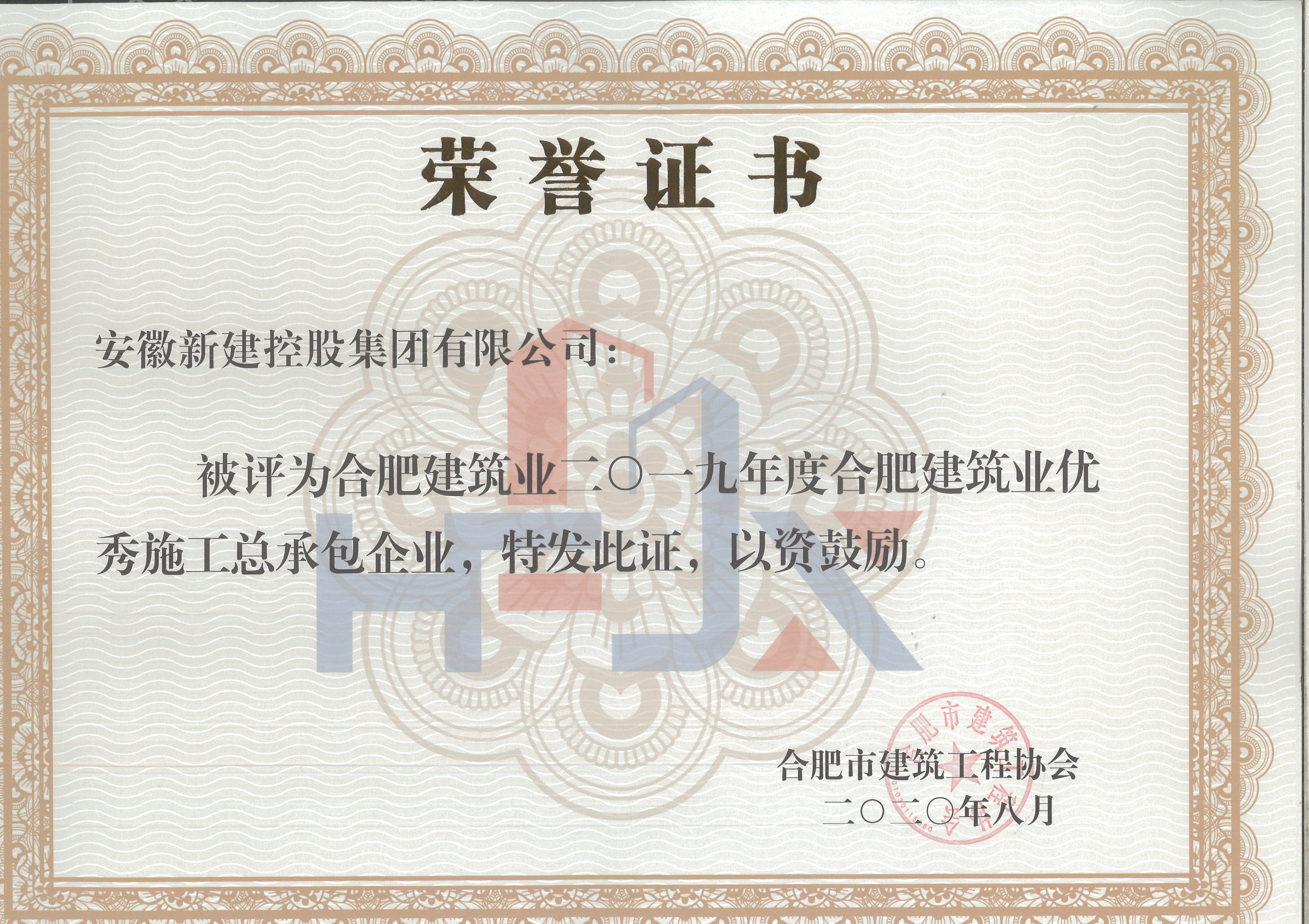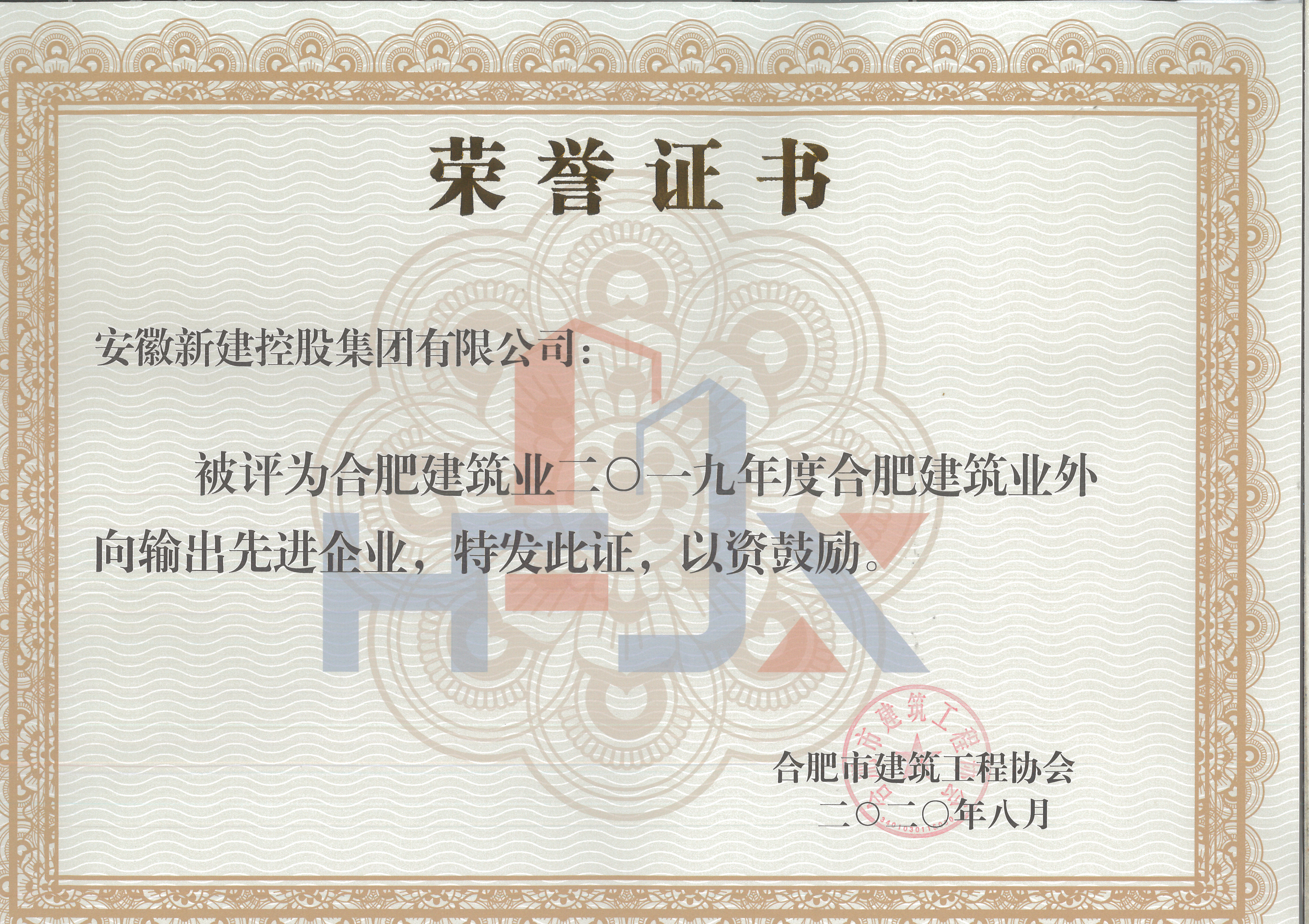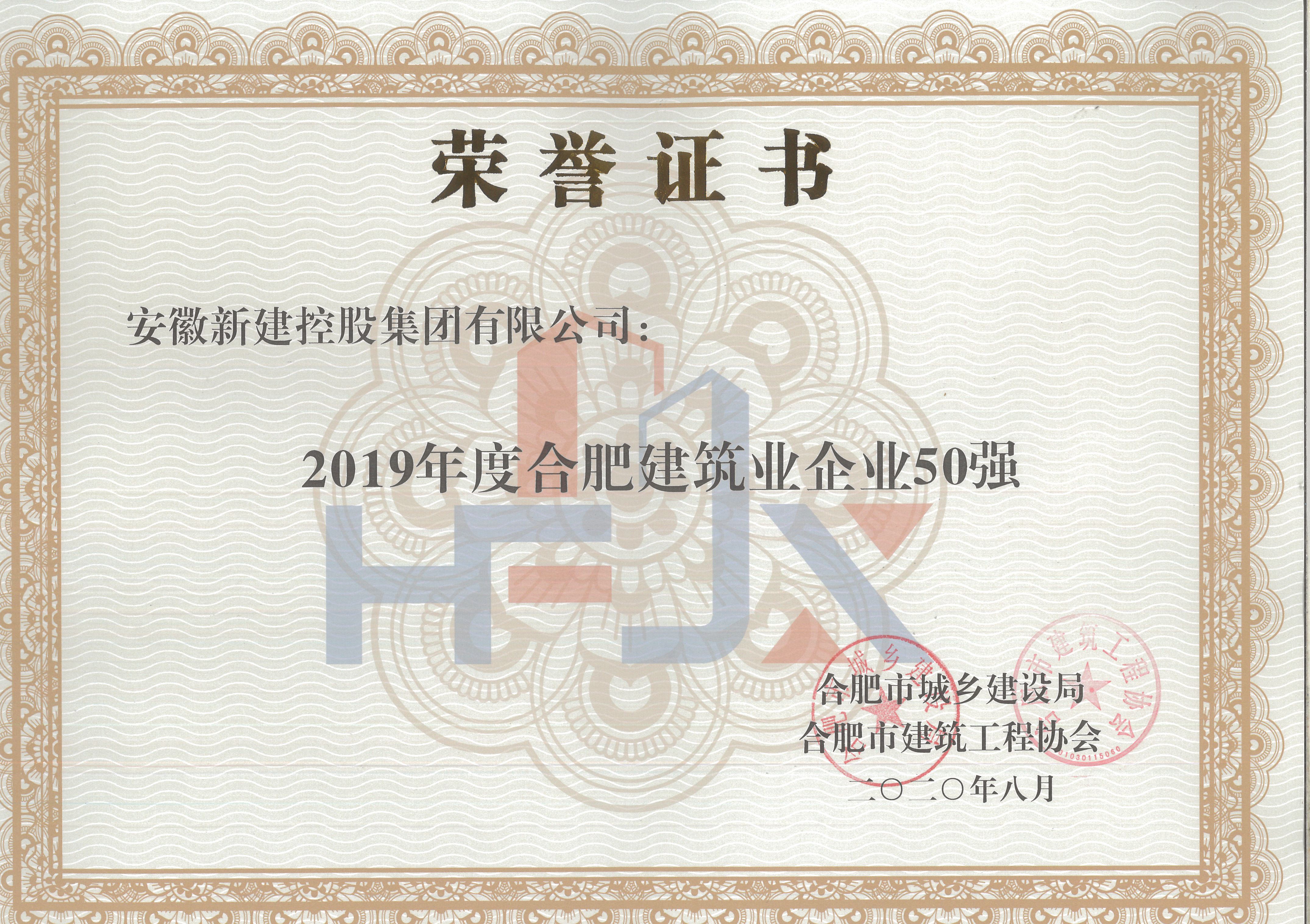 熱烈祝賀我公司獲得2019年合肥市建筑業(yè)企業(yè)50強(qiáng)、2019年合肥市建筑業(yè)優(yōu)秀施工總承包企業(yè)、2019年合肥市建筑業(yè)外向輸出先進(jìn)企業(yè)、2019年合肥市建筑業(yè)質(zhì)量管理先進(jìn)企業(yè)稱號(hào)!?。?/strong>