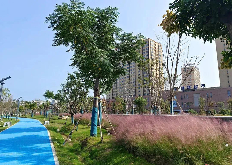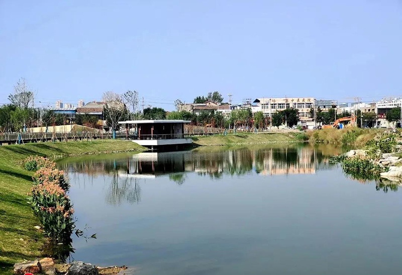 通過親水棧道、觀景亭、水生植物等營造豐富的空間,
