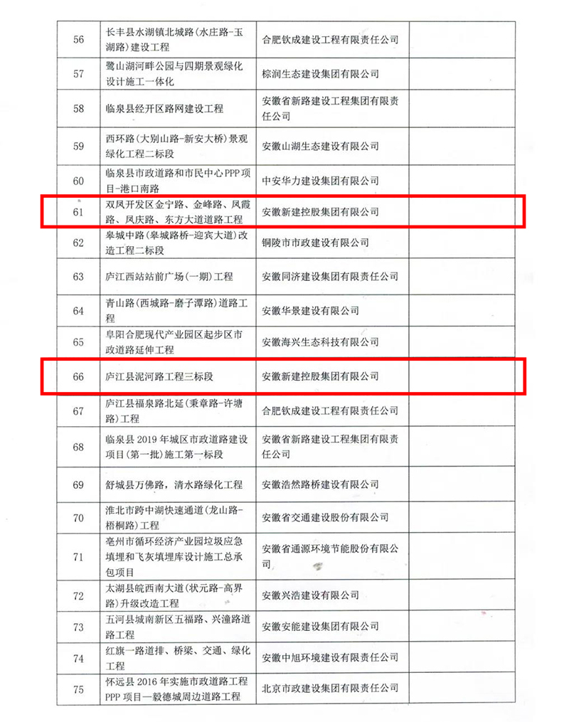 2022年1月17日,安徽省市政工程協(xié)會公布了2021年度安徽省市政工程優(yōu)質(zhì)獎評選結(jié)果的通知,經(jīng)形式審查、現(xiàn)場復(fù)核、協(xié)會專家評審委員會審定,并公示無異議,安徽新建控股集團(tuán)有限公司承建的四項工程榮獲“2020年度安徽省市政工程優(yōu)質(zhì)獎”!