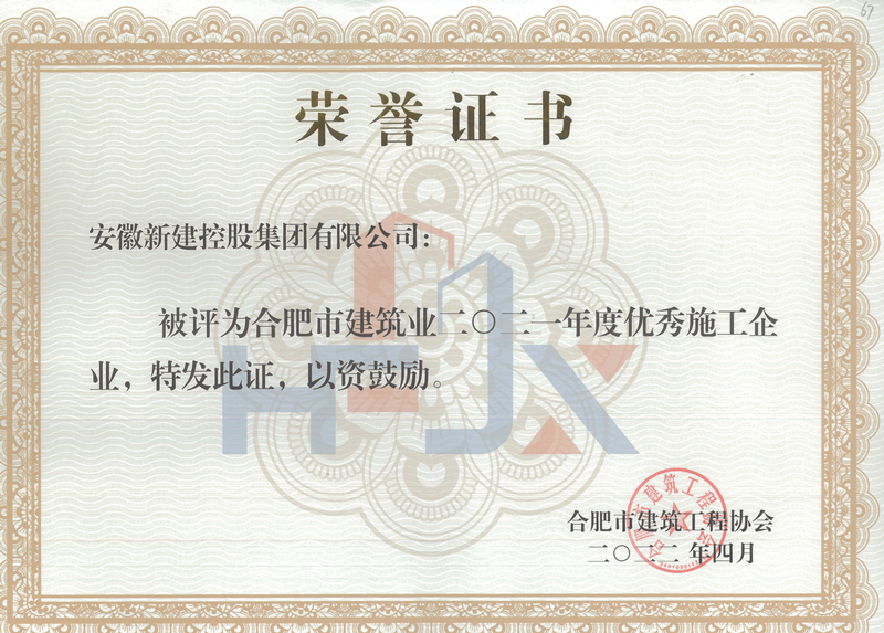 近日,合肥市建筑工程協(xié)會頒發(fā)榮譽證書,我公司獲評“合肥市建筑業(yè)2021年度優(yōu)秀施工企業(yè)”;集團公司劉波、李新春、盛革革三位同志分別榮獲合肥市建筑業(yè)2021年度“優(yōu)秀工匠”、“安全管理先進個人”、“揚塵治理先進個人”稱號。