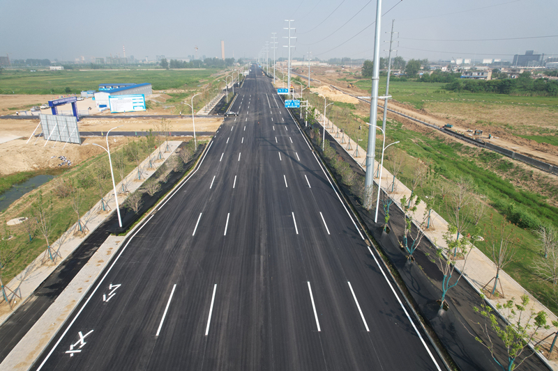 截止目前已順利完成淮河大道面層瀝青的攤鋪工作,進行標(biāo)線施劃;另一條道路濠州路也在完成側(cè)石鋪設(shè)、人行道面磚鋪設(shè)、交通標(biāo)志標(biāo)牌安裝、路燈埋線及基礎(chǔ)澆筑的基礎(chǔ)上,進行瀝青攤鋪前的準(zhǔn)備工作。