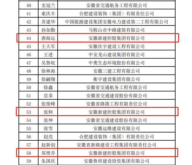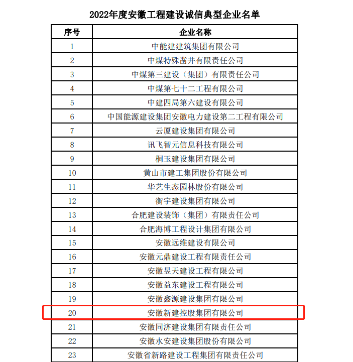 1月3日,安徽建筑業(yè)協(xié)會官網(wǎng)發(fā)布2022年度安徽工程建設(shè)誠信典型企業(yè)、誠信企業(yè)家、誠信項目經(jīng)理名單,安徽新建控股集團榮獲“2022年度安徽工程建設(shè)誠信典型企業(yè)”,公司總經(jīng)理王鵬程獲評“誠信企業(yè)家”,唐海運、張軻、鄭理喬分獲“誠信項目經(jīng)理”稱號。