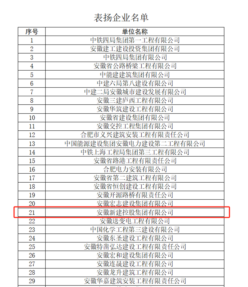 近日,合肥市城鄉(xiāng)建設(shè)局發(fā)布通報(bào),表揚(yáng)在2023年上半年全力推進(jìn)工程項(xiàng)目建設(shè),企業(yè)生產(chǎn)經(jīng)營情況穩(wěn)步增長,為合肥市建筑業(yè)發(fā)展做出突出貢獻(xiàn)的50家企業(yè),集團(tuán)公司榮列榜單。