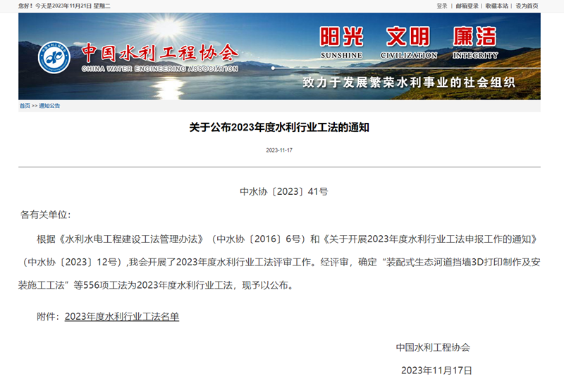 11月17日,中國水利工程協(xié)會發(fā)布了2023年度水利行業(yè)工法評審結(jié)果。經(jīng)評審,集團(tuán)公司申報的《大直徑壓力鋼管智能機(jī)械制作及安裝施工工法》,被評為2023年度水利行業(yè)工法。