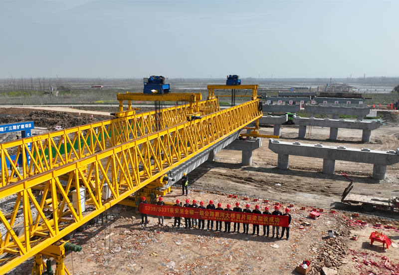 3月20日,伴隨著架橋機(jī)的轟鳴聲,集團(tuán)公司聯(lián)合承建的S239、S331來(lái)安至全椒段一級(jí)公路(全椒火車站至滁州大道段)工程首片預(yù)制箱梁精準(zhǔn)架設(shè)在襄河大橋0號(hào)橋臺(tái)至1號(hào)橋墩之間,標(biāo)志著項(xiàng)目建設(shè)從下部結(jié)構(gòu)施工正式轉(zhuǎn)入橋梁上部結(jié)構(gòu)施工階段。