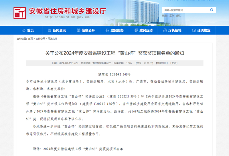 8日19日,安徽省住房和城鄉(xiāng)建設(shè)廳發(fā)布《關(guān)于公布2024年度安徽省建設(shè)工程“黃山杯”獎(jiǎng)獲獎(jiǎng)項(xiàng)目名單的通知》,安徽新建控股集團(tuán)承建的新站高新區(qū)銅陵北路(淮海大道-泗水路)道路工程喜獲2024年度安徽省建設(shè)工程“黃山杯”獎(jiǎng)。