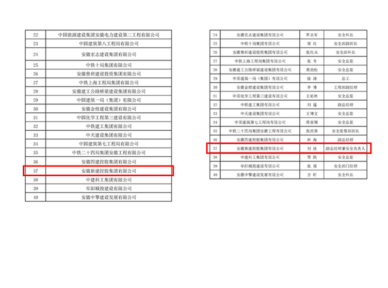 近日,安徽省建設(shè)工程質(zhì)量與安全協(xié)會發(fā)布表揚(yáng)通知,集團(tuán)公司榮獲“安徽省建筑安全生產(chǎn)標(biāo)準(zhǔn)化工地優(yōu)秀施工企業(yè)”稱號,公司多名安全管理人員獲得表彰。