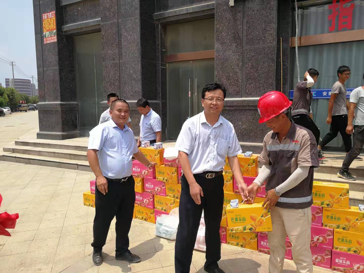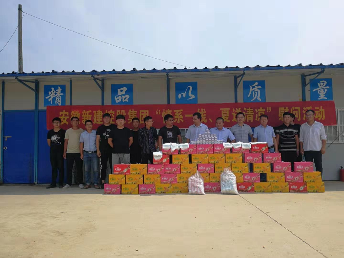 為切實(shí)做好夏季防暑降溫工作,確保一線員工的身體健康和安全生產(chǎn),2019年7月24日,安徽新建控股集團(tuán)有限公司行政總監(jiān)賀軍、財務(wù)總監(jiān)葉炳宏、總工程師李小寶、人力資源部經(jīng)理廖龍華一行,到全椒縣各項(xiàng)目部組織開展“情系一線、夏送清涼”慰問活動,為項(xiàng)目工地的一線員工送去防暑降溫物品。