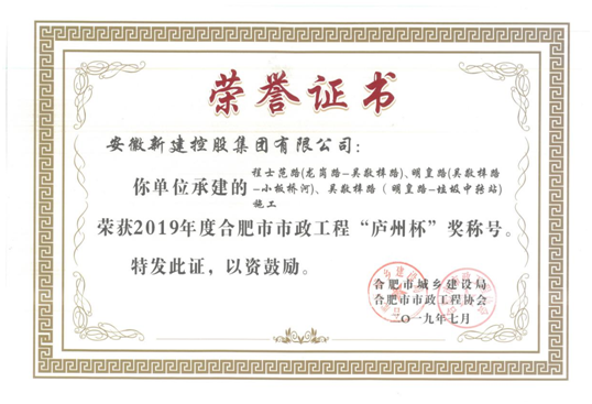 日前,從合肥市市政工程協(xié)會(huì)傳來喜訊,經(jīng)單位申報(bào)、部門推薦、合肥市市政工程協(xié)會(huì)組織資料審查研究、網(wǎng)上公示等程序,我公司承建的蜀山區(qū)玉鏡路、石牛路道排工程、長豐縣鳳亭路(魏武路-濛河路)施工、程士范路(龍崗路-吳敬梓路)、明皇路(吳敬梓路-小板橋河)、吳敬梓路(明皇路-垃圾中轉(zhuǎn)站)施工項(xiàng)目榮獲“廬州杯”獎(jiǎng)。