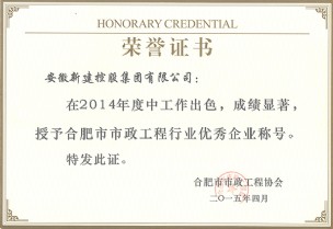 2014年合肥市市政工程優(yōu)秀企業(yè)