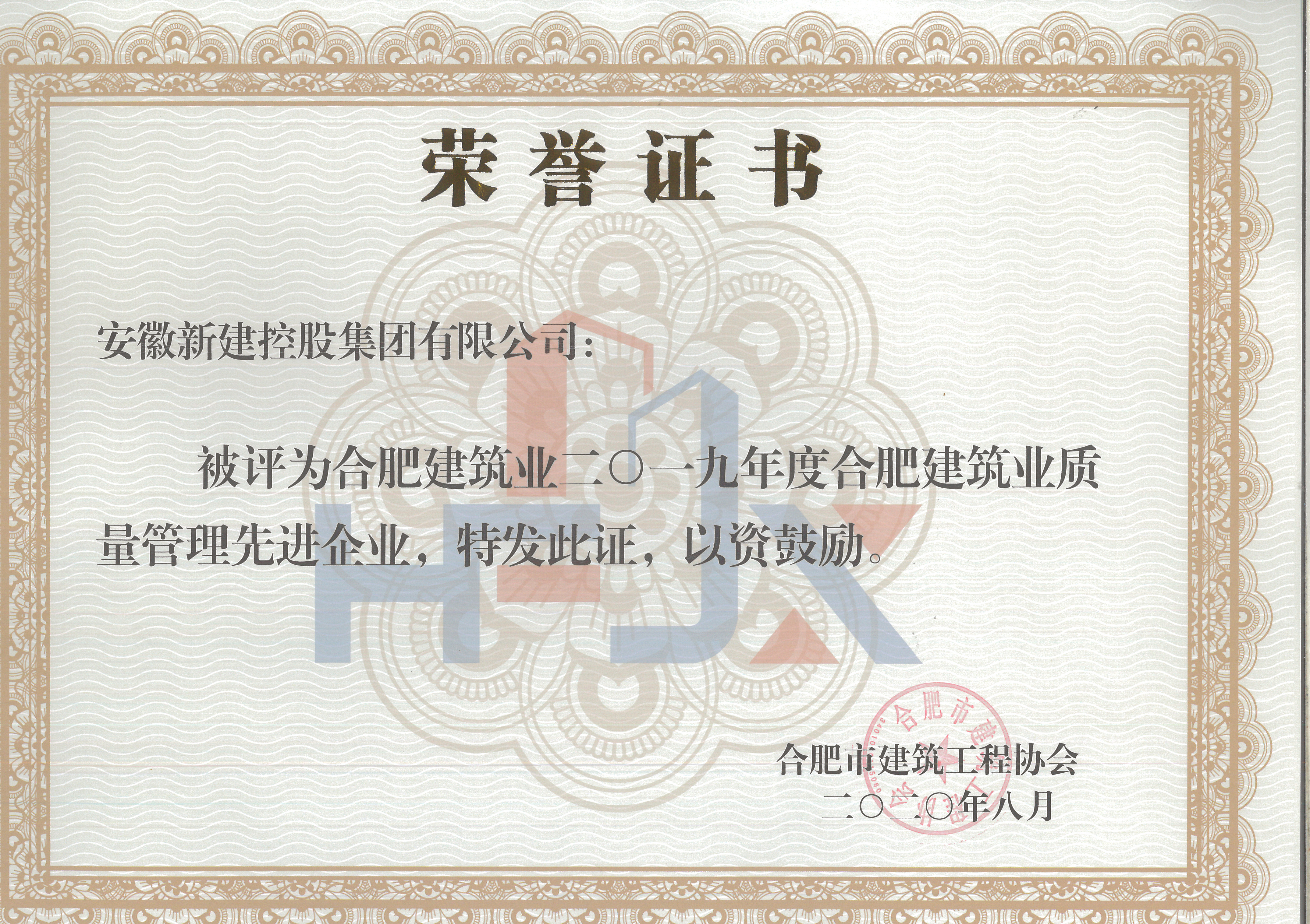 熱烈祝賀我公司獲得2019年合肥市建筑業(yè)企業(yè)50強(qiáng)、2019年合肥市建筑業(yè)優(yōu)秀施工總承包企業(yè)、2019年合肥市建筑業(yè)外向輸出先進(jìn)企業(yè)、2019年合肥市建筑業(yè)質(zhì)量管理先進(jìn)企業(yè)稱號(hào)!?。?/strong>