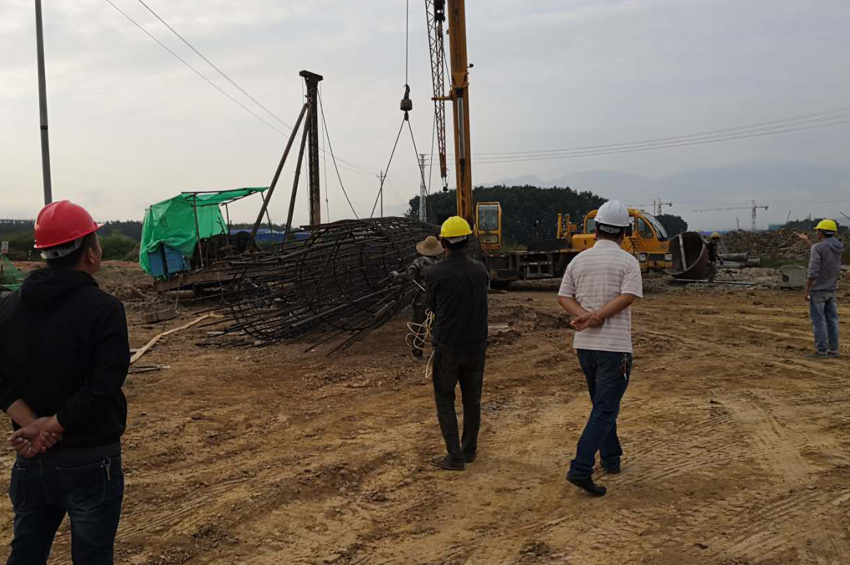該項目工程主要包含土方、道路、橋梁等,施工現(xiàn)場有35KV高壓線塔2座,預(yù)制梁場施工便道及0號橋臺都處于高壓線下方;另外在K0+480-K0+580段是流沙河。為抓好安全施工,確保施工質(zhì)量,項目部成立安全生產(chǎn)領(lǐng)導(dǎo)小組及安全科,加強日常管控及巡查,督促現(xiàn)場工人佩戴安全防護用具;嚴抓三級安全教育,做好安全及技術(shù)交底;對現(xiàn)場臨時用電接線及保護接地,尤其是設(shè)備執(zhí)行“一機、一閘、一漏、一箱”的情況,協(xié)同電工每日進行嚴格巡檢并填寫巡檢記錄;對沖孔泥漿池圍擋采取鋼管密目網(wǎng),上掛安全警示牌等,實現(xiàn)了施工過程無事故。