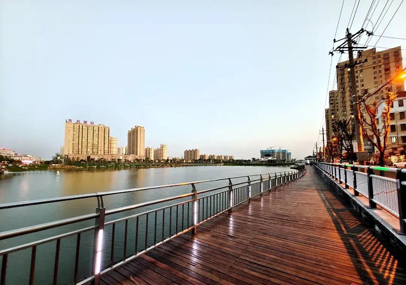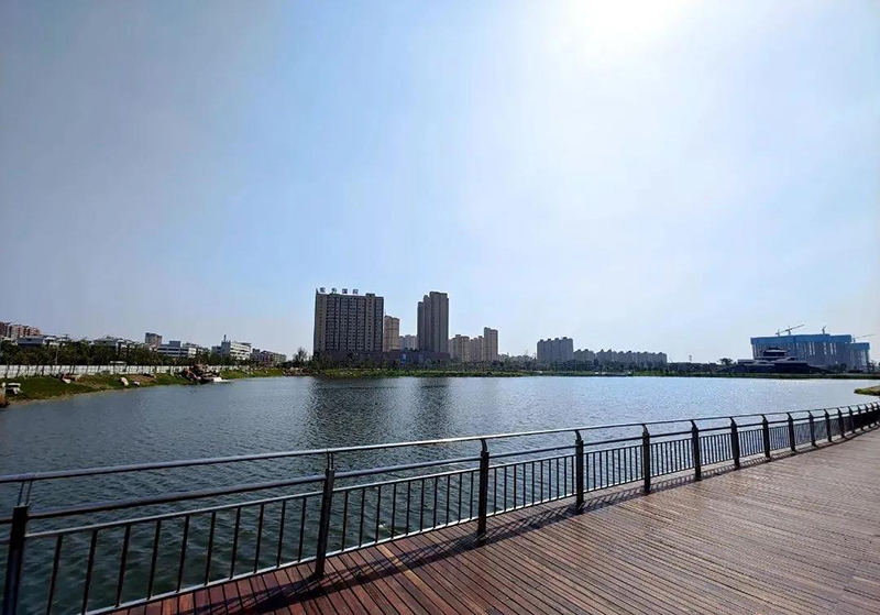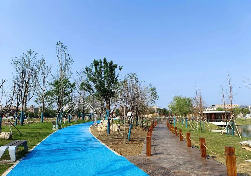 通過親水棧道、觀景亭、水生植物等營造豐富的空間,