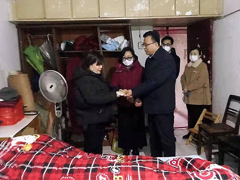 在街道和社區(qū)有關部門前期摸底的基礎上,當日公司領導在社區(qū)有關領導的陪同下,先后到童某、劉某、歐陽某、王某和靳某家,每到一戶,都在為困難群眾送上慰問品和祝福的同時,關心詢問他們的健康狀況、生活情況,認真聆聽有何困難和需求。最后在靳某家慰問時,針對靳某大病多年癱瘓在床,去年病情加重住進重癥監(jiān)護室,經(jīng)搶救脫離危險后直至年底才出院,靳某的妻子在12月底又因意外胳膊摔傷,導致家中雪上加霜的情況,公司領導為靳某送上5000元的節(jié)日慰問金,另外有5000元的醫(yī)療補助費由公司委托包公街道“人在暖途”困境家庭救助服務機構于春節(jié)后發(fā)放給靳某。