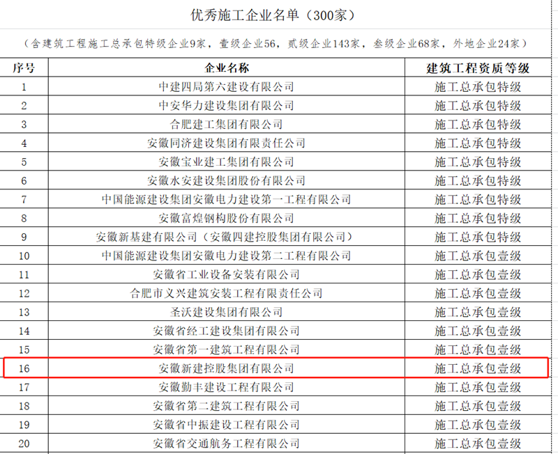 2021年以來集團先后獲得“安徽省優(yōu)秀市政施工企業(yè)”、“安徽省水利工程禹王杯獎”、“安徽省建筑安全生產(chǎn)標準化示范工地”、“交通運輸部公路施工企業(yè)全國綜合AA級信用評價”、“安徽省優(yōu)質(zhì)工程黃山杯獎”、“安徽省建筑企業(yè)誠信典型企業(yè)和AAA信用企業(yè)”、“安徽省2021年市政工程優(yōu)質(zhì)獎”、“安徽省優(yōu)秀建筑業(yè)企業(yè)”、“安徽省建筑業(yè)企業(yè)50強”、“合肥建筑業(yè)企業(yè)20強”等獎項。公司始終堅持自營施工,具有很強的綜合施工能力,二十多年來,承建了大批政府重點工程,以良好的經(jīng)營業(yè)績、突出的社會貢獻、雄厚的綜合實力獲得了社會的廣泛認可。