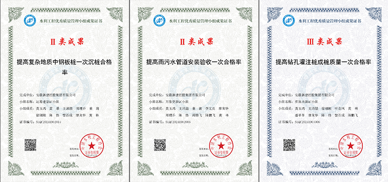 自今年3月15日中國水利工程協(xié)會發(fā)布《關(guān)于開展2024年度水利工程優(yōu)秀質(zhì)量管理小組成果申報工作的通知》以來,公司高度重視,從各項目整理的技術(shù)成果中篩選出最具代表性的3項QC成果,于6月份完成了申報工作,并參加了11月份的視頻發(fā)布和現(xiàn)場發(fā)布。經(jīng)主辦方初審、資料評價、發(fā)表評價和評價委員會的嚴(yán)格審定,公司申報的3項QC成果——運籌建策QC小組的《提高復(fù)雜地質(zhì)中鋼板樁一次沉樁合格率》、萬象更新QC小組的《提高雨污水管道安裝驗收一次合格率》、推陳出新QC小組的《提高鉆孔灌注樁成樁質(zhì)量一次合格率》成功獲評。