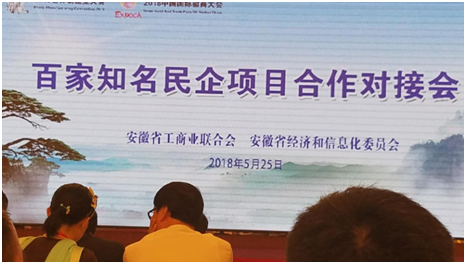 2018年5月25日下午,世界制造業(yè)大會(huì)百家知名民營(yíng)企業(yè)項(xiàng)目合作對(duì)接會(huì)在安徽金陵大酒店舉行,中央統(tǒng)戰(zhàn)部副部長(zhǎng)、全國(guó)工商聯(lián)黨組書記徐樂江、省委常委、宣傳部長(zhǎng)虞愛華分別致辭,副省長(zhǎng)王翠鳳主持會(huì)議。部分世界和全國(guó)500強(qiáng)民營(yíng)企業(yè)、行業(yè)知名企業(yè)和商協(xié)會(huì)代表等出席會(huì)議。